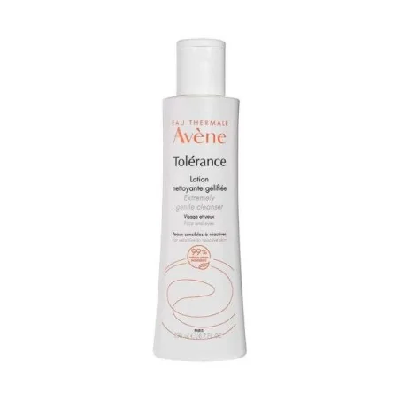 Formulée sans parfum, Tolérance Lotion nettoyante gélifiée nettoie et démaquille en douceur le visage, les yeux et les lèvres. Elle élimine les impuretés accumulées au cours de la journée sans sur-irriter la peau. Nettoyant démaquillant sans rinçage, sa texture légèrement gélifiée garantit confort et douceur aux peaux les plus sensibles. Les bienfaits : • NETTOIE ET DEMAQUILLE le visage, les yeux et les lèvres sans sur-irriter la peau grâce à sa texture gélifée ultra-douce, riche en Eau thermale d’Avène naturellement apaisante. • BONNE TOLÉRANCE grâce à sa formule épurée et ses agents nettoyants doux. • NATURELLE. 99% d’ingrédients d’origine naturelle. Conseils d’utilisation: Appliquer sur le visage, les yeux et les lèvres à l’aide d’un coton ou directement avec le bout des doigts. Sans rinçage.