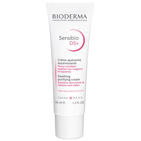 Le soin spécifique apaisant et assainissant des peaux sensibles associant rougeurs et squames localisées en particulier au niveau des zones grasses irritées : ailes du nez, sourcils, front, menton. • Innovation issue de la recherche BIODERMA experte en biologie cutanée, Sensibio DS+ Crème permet de lutter contre l’origine des rougeurs et des états squameux : elle contribue à limiter la prolifération de la levure Malassezia, agent irritant responsable de l’aggravation de l’état cutané. • Apaisante, Sensibio DS+ Crème calme l’épiderme irrité, atténue les rougeurs et réduit visiblement la formation des squames. • Sa texture “gel-crème” très agréable, légère et non grasse apporte un réel confort cutané. • Non comédogène, Sensibio DS+ Crème garantit une excellente tolérance. Conseils d’utilisation • Appliquez Sensibio DS+ Crème , 1 à 2 fois par jour, sur une peau nettoyée (idéalement avec Sensibio DS+ Gel nettoyant apaisant assainissant ). • Pour les états squameux du cuir chevelu de l’adulte, nous vous recommandons d’utiliser Nodé DS+ Anti-récidive , shampooing anti-pelliculaire intensif.