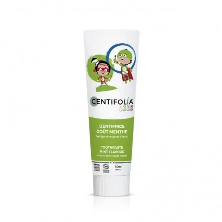 Dentifrice goût Menthe bio sans fluor sulfate Centifolio a une formule douce au goût de menthe, spécialement conçue pour prendre soin des premières dents des enfants. Ce dentifrice est certifié cosmos organic, contient 99.4% d’ingrédients naturels. Ce dentifrice très doux nettoie, protège et respecte l’émail des dents Procure une sensation de fraîcheur longue durée, prend en charge la santé de toute la cavité buccale. Entretient la résistance de l’émail doux des enfants Un émail sain et des dents blanches nacrées. Fournit une haleine fraîche pendant longtemps Les enfants adoreront certainement brosser leurs dents avec la délicieuse saveur de Menthe idéal pour les enfants 3 ans Sans sulfate. Formule adaptée aux besoins des dents des plus grands. CONSEILS D’UTILISATION Appliquez une noisette de dentifrice sur la brosse à dents. Avec une pression minimale, brossez avec un mouvement circulaire deux fois par jour.