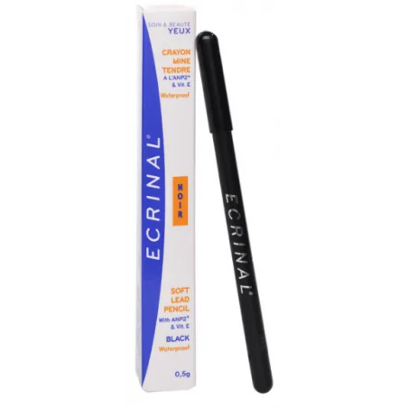 Le crayon mine tendre waterproof Ecrinal, de couleur Noir, souligne votre regard. À la texture douce et crémeuse, il s’applique aisément et est agréable à porter. Ce produit de maquillage a la particularité d’être composé de divers actifs : de la vitamine E, aux propriétés antioxydantes, qui préserve du vieillissement cutané prématuré ; d’huiles végétales de macadamia, de pépins de raisins et de cameline, aux vertus nourrissantes, qui, associées à un ingrédient riche en acide aminé, stimulent le bulbe pilaire. Doté d’une mine rétractable, il ne se taille pas : il suffit de tourner l’extrémité du crayon pour faire sortir la mine. Testé sous contrôle ophtalmologique, il convient aux porteurs de lentilles. Indication : Crayon pour les yeux. Conseils d’utilisation : Appliquer le crayon sur la paupière inférieure, au ras des cils. Si nécessaire, affiner avec le bout des doigts. Conserver le crayon à l’abri de la chaleur.