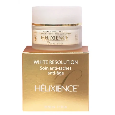 HELIXIENCE soin anti-taches anti-âge Nouvelle formule Une formule ultra-active pour lutter contre les marques du temps sur le visage (taches brunes) et les taches de grossesses. Un soin complet anti-âge qui redonne éclat et fermeté à l’épiderme. Formule : PRINCIPES ACTIFS : Iparzine 4-A Complexe éclaircissant WHITESPHERE TM PREMIUM Huile de son de riz Glycérine végétale Conseils d’utilisation : Appliquer quotidiennement sur une peau parfaitement démaquillée matin et soir, pendant deux mois, puis continuer les applications pour éviter l’apparition de nouvelles taches.