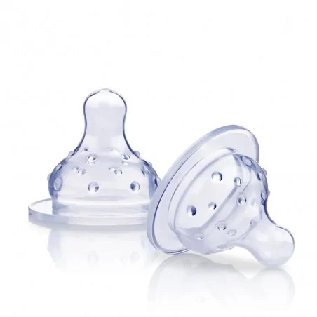 Nûby Lot de 2 tétines silicone pour biberons à col standard, débit variable +4 mois pour liquide épais Réf : ID00921