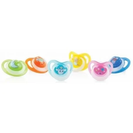 La sucette orthodontique fluorecente de Nûby™ est munie d’ergots brevetés qui massent les gencives de bébé et avec couvercle de protection. La sucette convient aux bébés âgés de 6 à 36 mois.Tétine orthodontique avec ergots, Ergots brevetés qui massent les gencives de bébé, Circulation de l’air optimisée grâce à la forme et les aérations de la collerette, empêchant l’irritation de la peau, Disponible en 3 assortiments de couleurs