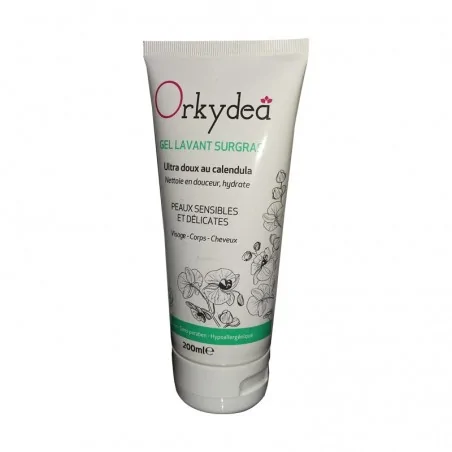 Orkydea Gel Lavant Surgras 200ml ultra doux au calendula nettoie en douceur, hydrate peaux sensibles et delicates visage corps cheveux