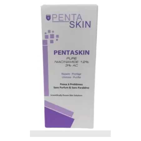 PENTASKIN NIACINAMIDE 12% SERUM EST UN SOIN DERMATOLPGEIQUE SPECIALEMENT FORMULE POUR LES PEAUX A IMPERFECTIONS. UNE FORTE CONCENTRATION DE NIACINAMIDE 12% ET 3%AC NET POUR UN RESULTAT OPTIMAL. PENTASKIN NIACINAMIDE 12% SERUM EST FACILE A APPLIQUER ET PERMET DE: REDUIRE LES IMPERFECTIONS ET LES ROUGEURS. REGULER LE SEBUM. ILLUMINER LE TIENT. PUIFIER LA PEAU. CONSEILS D’UTILISATION : APPLIQUER LE SERUM PENTASKIN NIACINAMIDE 12% MATIN ET SOIR SUR UNE PEAU PROPRE MASSER DELICATEMENT INGREDIENTS : WATER, NIACINAMIDE, ALCOHOL DENAT, GLYCERIN, ISOPENTYLDIOL, BUTYLENE GLYCOL, CAMELLIA SINENSIS LEAF EXTRACT, CURCUMA LONGA ROOT EXTRACT, PUNICA GRANATUM FRUIT EXTRACT, XANTHAN GUM, MANNITOL, PEG-60 ALMOND GLYCERIDES, PEG-7 GLYCERYL COCOATE, OLEANOLIC ACID, ETHYLHEXYLGLYCERIN, BENZOTRIAZOLYL DODECYL P-CRESOL CAPRYLYL GLYCOL, CARBOMER, FRAGRANCE, NORDIHYDROGUAIARETIC ACID, PHENOXYETHANOL, OCTENIDINE HCI, CITRI ACID, POTASSIUM SORBATE, SODIUM BENZOATE.
