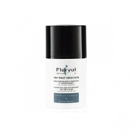 Pluryal Skincare emulsion de jour Hydratante et Antioxydante (peaux mixtes à grasses Un traitement anti-âge de jour 3 en 1 disponible en deux formes galéniques pour convenir à tous les types de peau : ÉMULSION DAY MUST Spécialement conçue pour les peaux grasses et mixtes. Non comédogène et non acnéigène*.